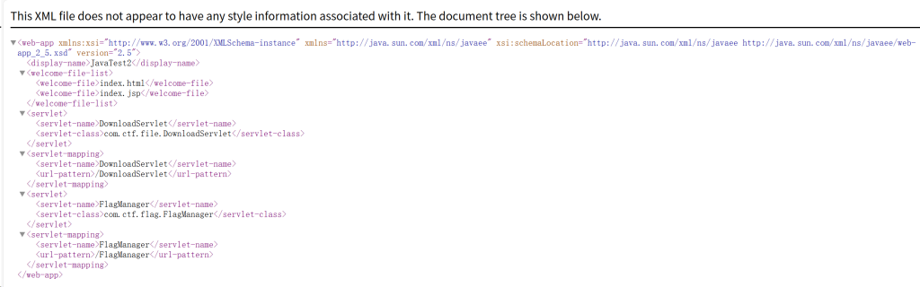 1、访问/DownloadServlet,post传参filename=WEB-INF/web.xml,下载到得到了Web应用的程序配置文件,并且给出了跟flag相关字样的字符串,审计一下,我看不懂,交给deepseek了