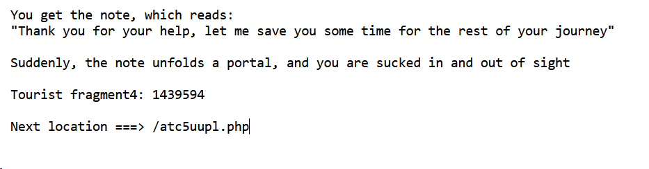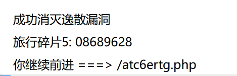 “<!--苦苦找寻, 在附近的草丛中发现的你的令牌, 你成功进入校园 ===> /atc2cnzd.php 旅行碎片1: flag{2-->” 访问得到