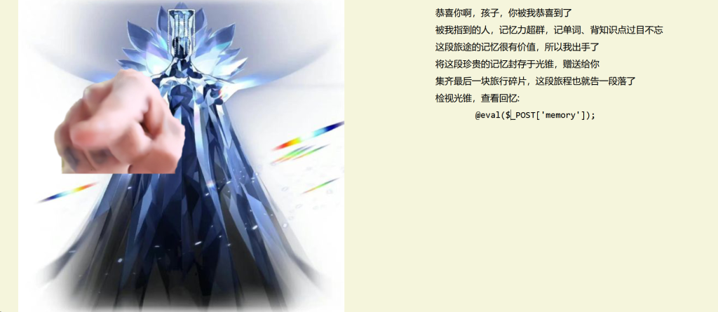 最后传memory=system(ls ); 找到目录访问 获取最后一块 e}