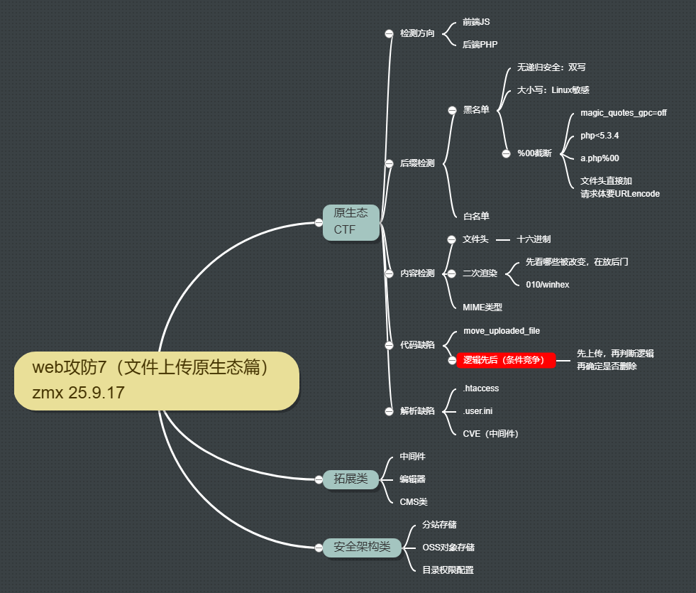 另外文件上传也有多个存储逻辑,不同的文件存储方案也会给攻击者带来不一样的挑战!